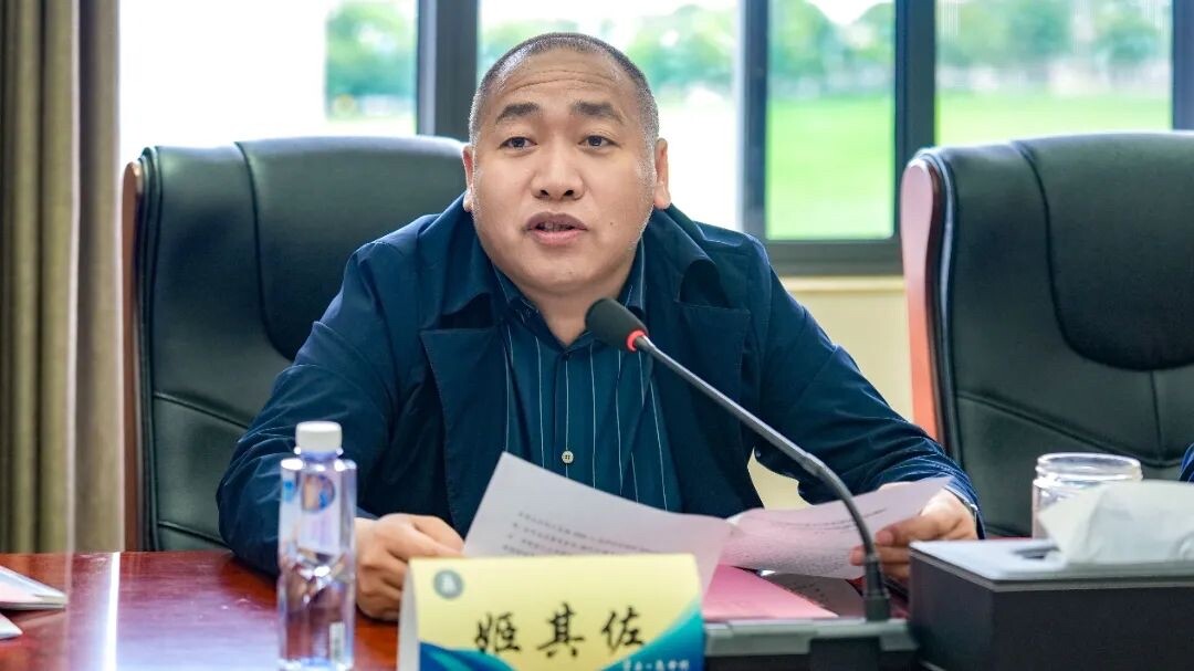 姬其佐代表学校对李汶娟一行来校调研表示热烈欢迎,并围绕学校发展及学校构建的非遗产、学、研、用多元模式展开介绍。