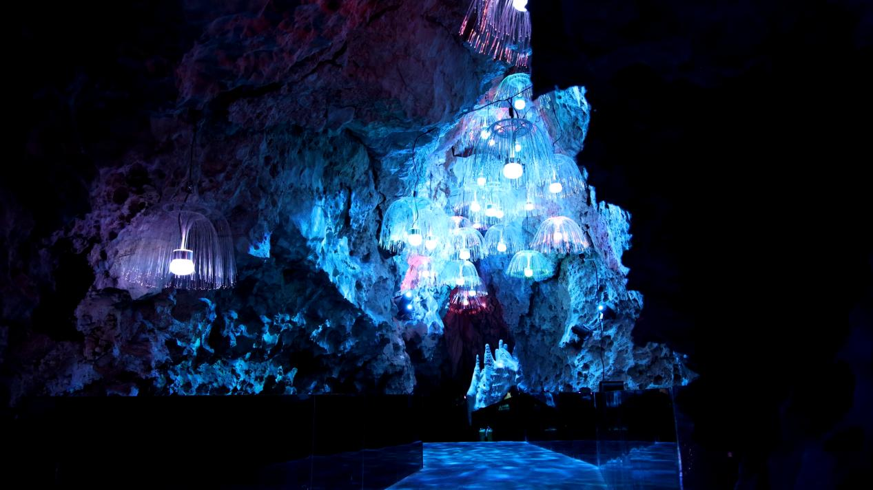 在四周碧水清波环绕的金梭岛上,必去的打卡地自然少不了“龙宫”。它为什么叫“宫”而不叫“洞”,那是因为在陆地山体中的才叫“洞”,而在水中岛上的才能称作“宫”,它是岛内形成的天然水下溶洞,溶洞内有石柱、石笋、石幔等天然奇观,全长约1300米,海中有岛,岛中有洞,洞中有景,景观独秀。因此,游览龙宫是一次非常独特的大理景点体验。乘船上岛进入洞内,欣赏千姿百态的钟乳石,并在水下剧场观看一场讲述白族渔家生活的歌舞秀,是深入了解金梭岛渔文化的绝佳方式。