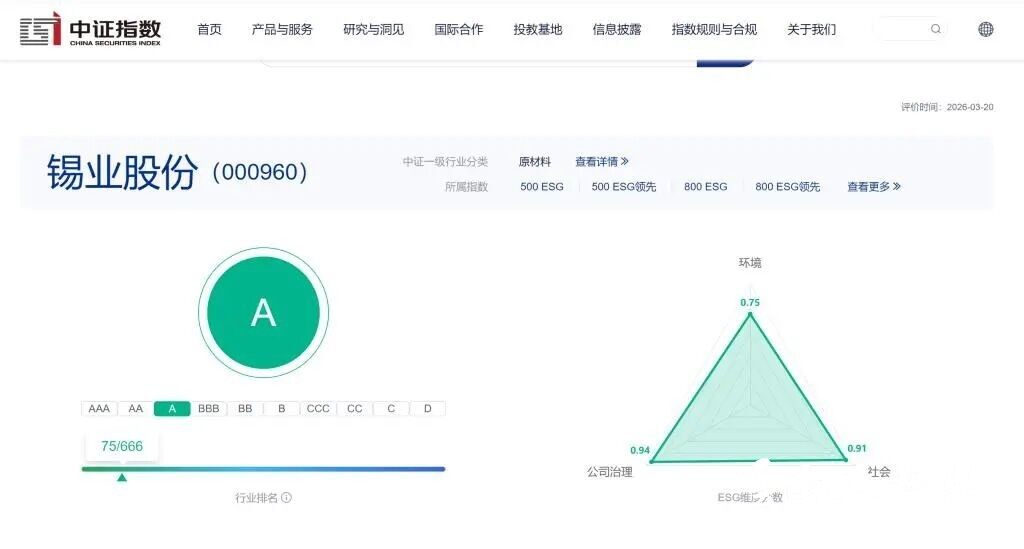 把责任融入发展!锡业股份斩获ESG评级A级